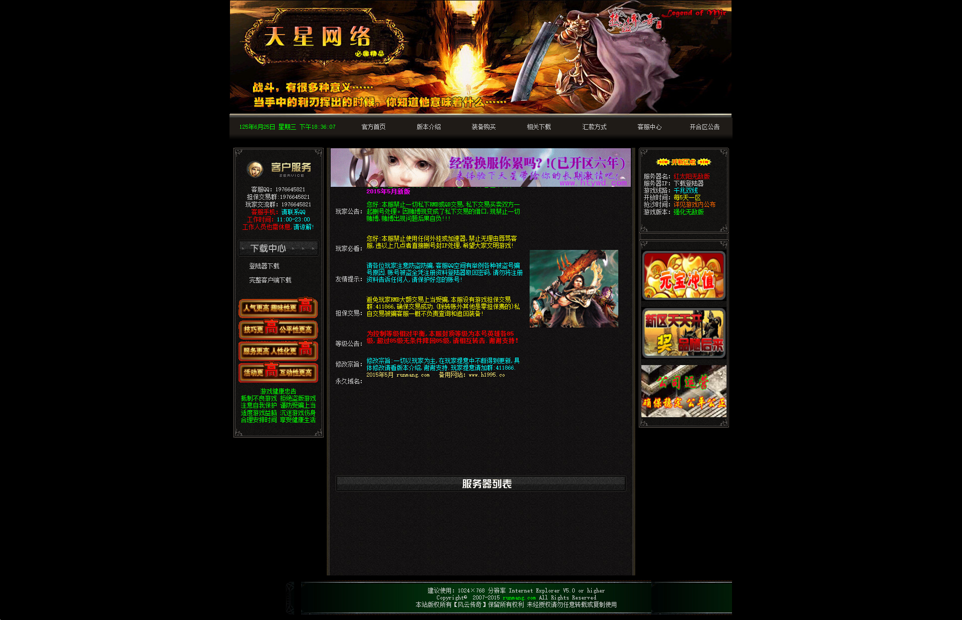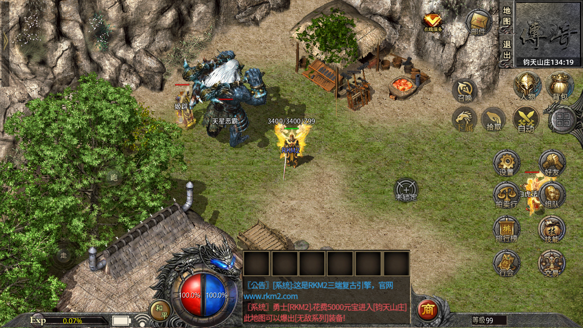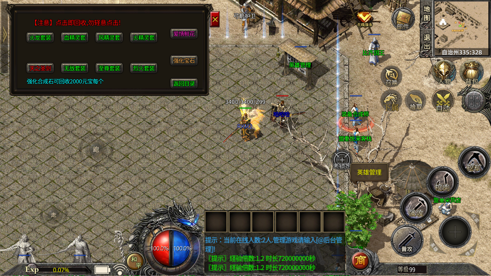 最新添加盛大装备“战士无敌套装”“法师烈火套装”“道士至尊套装”,并增加烈火至尊加HP属性