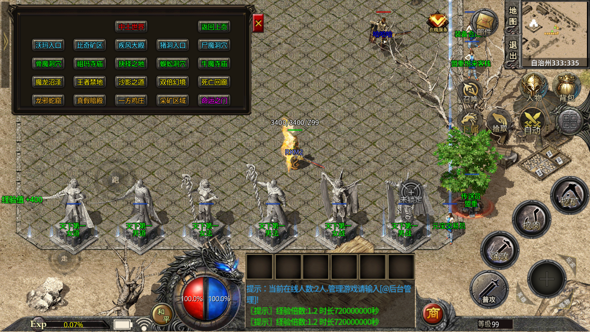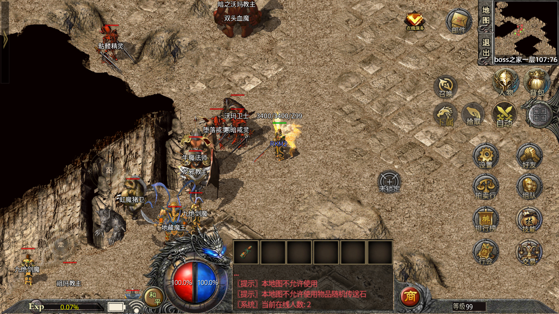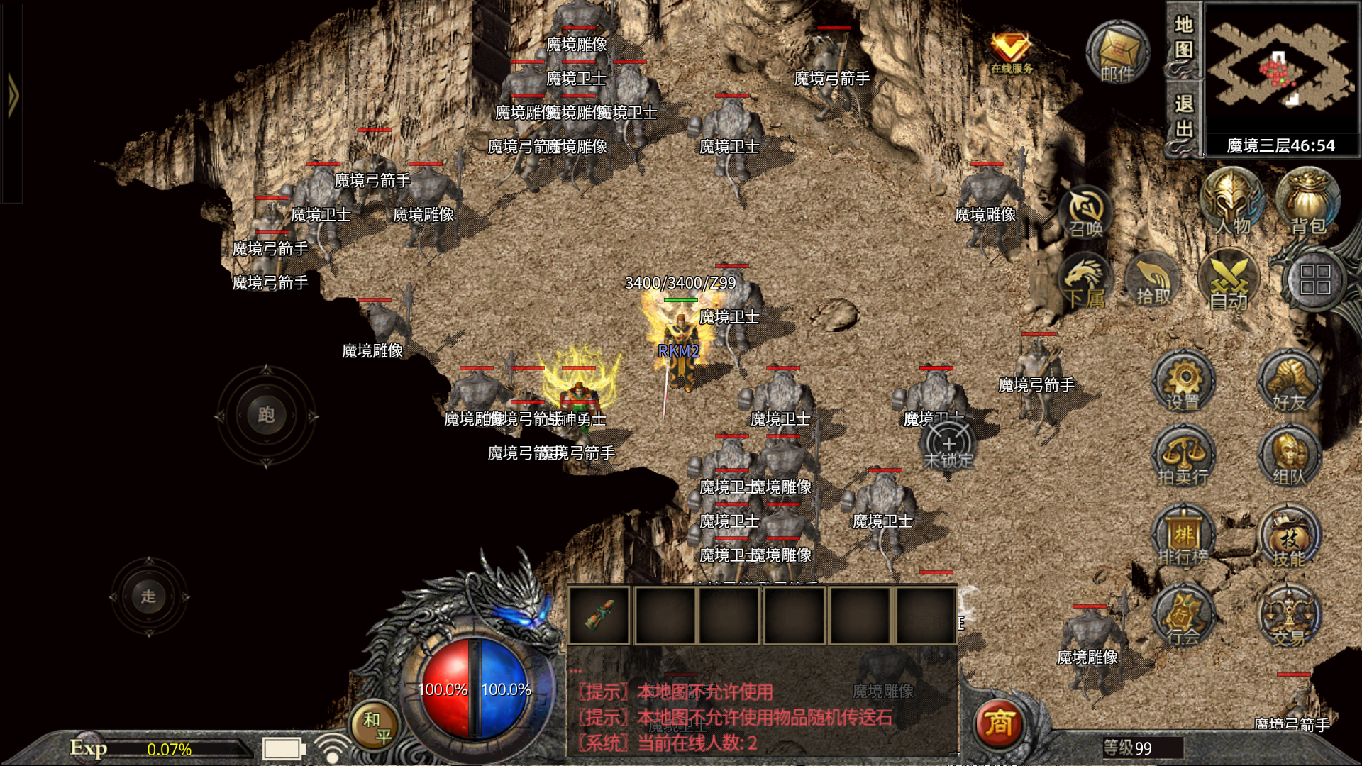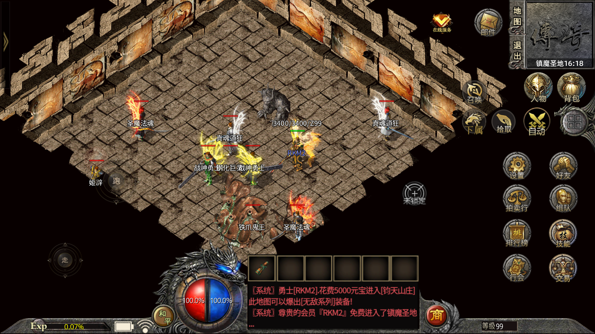 【练级系统】55级前可在休息间,55级后可在恶魔一层或会员练级地图用元宝自助刷怪。.√.