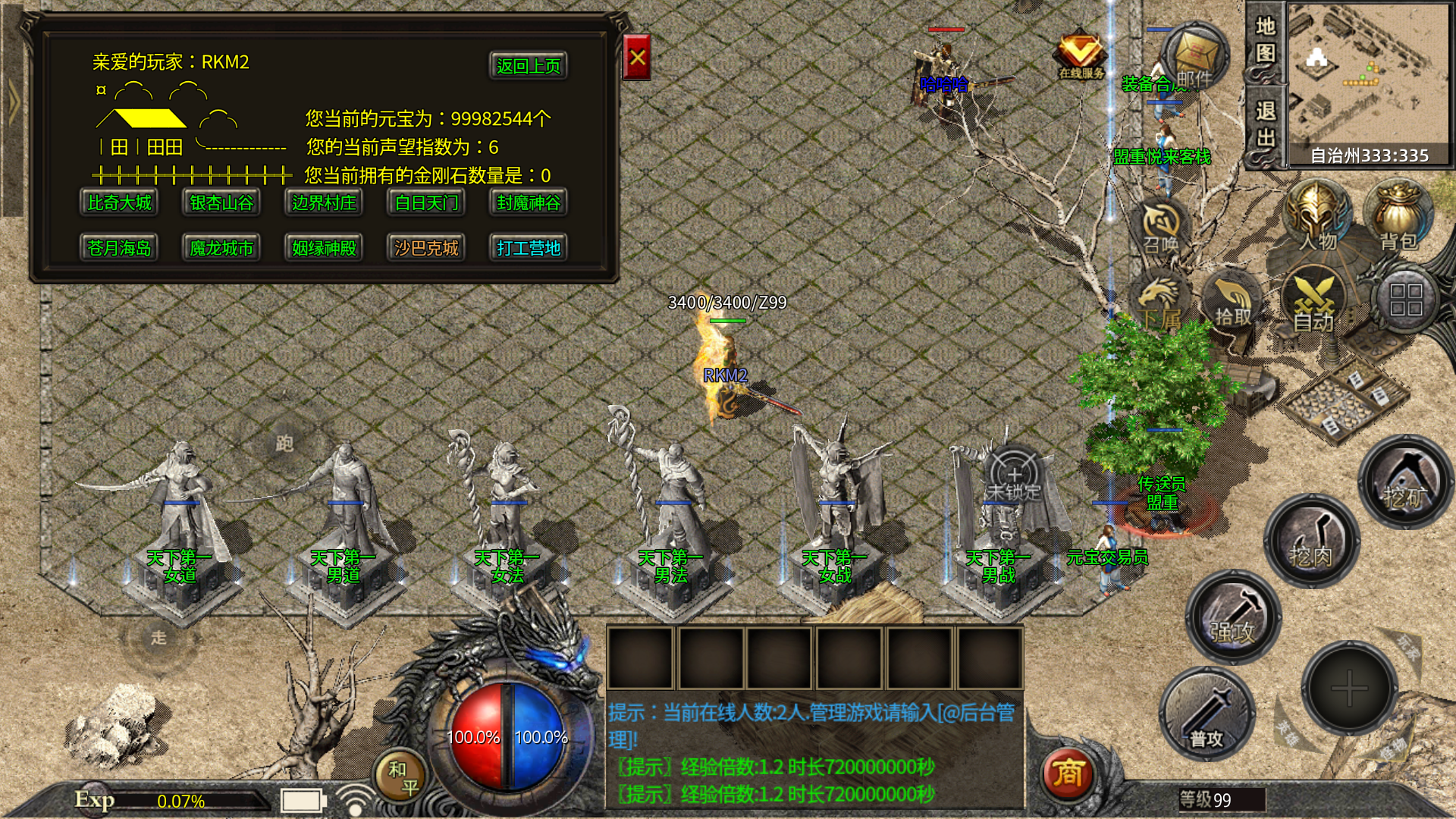 新加入土400,400刷万年树妖爆(钻石会员卡,声望卷,元宝,新技能)每两个小时刷一次