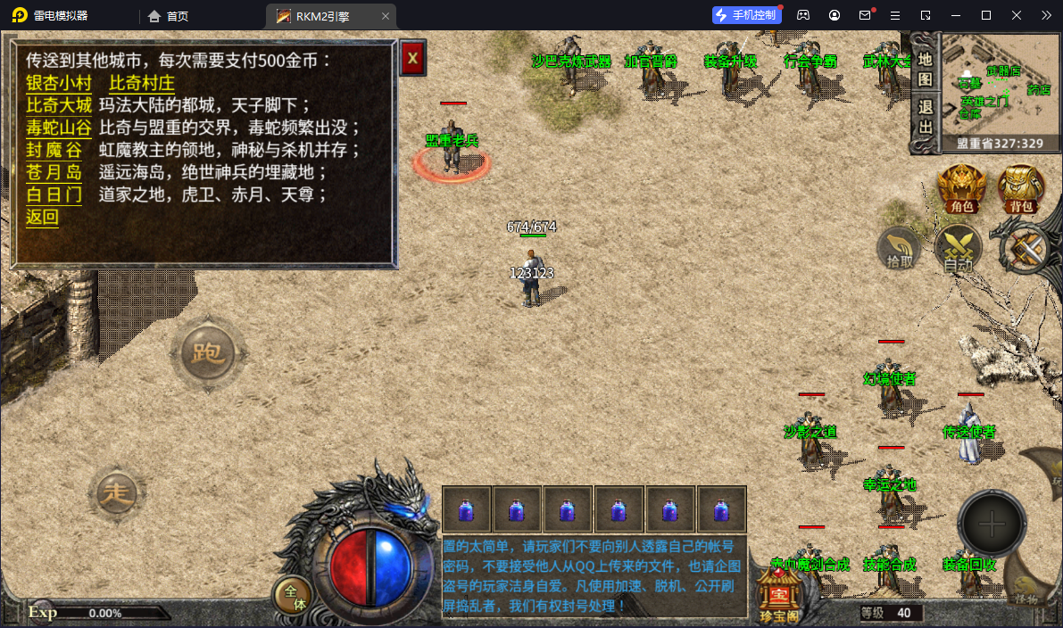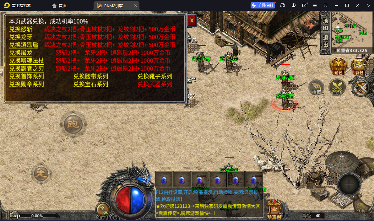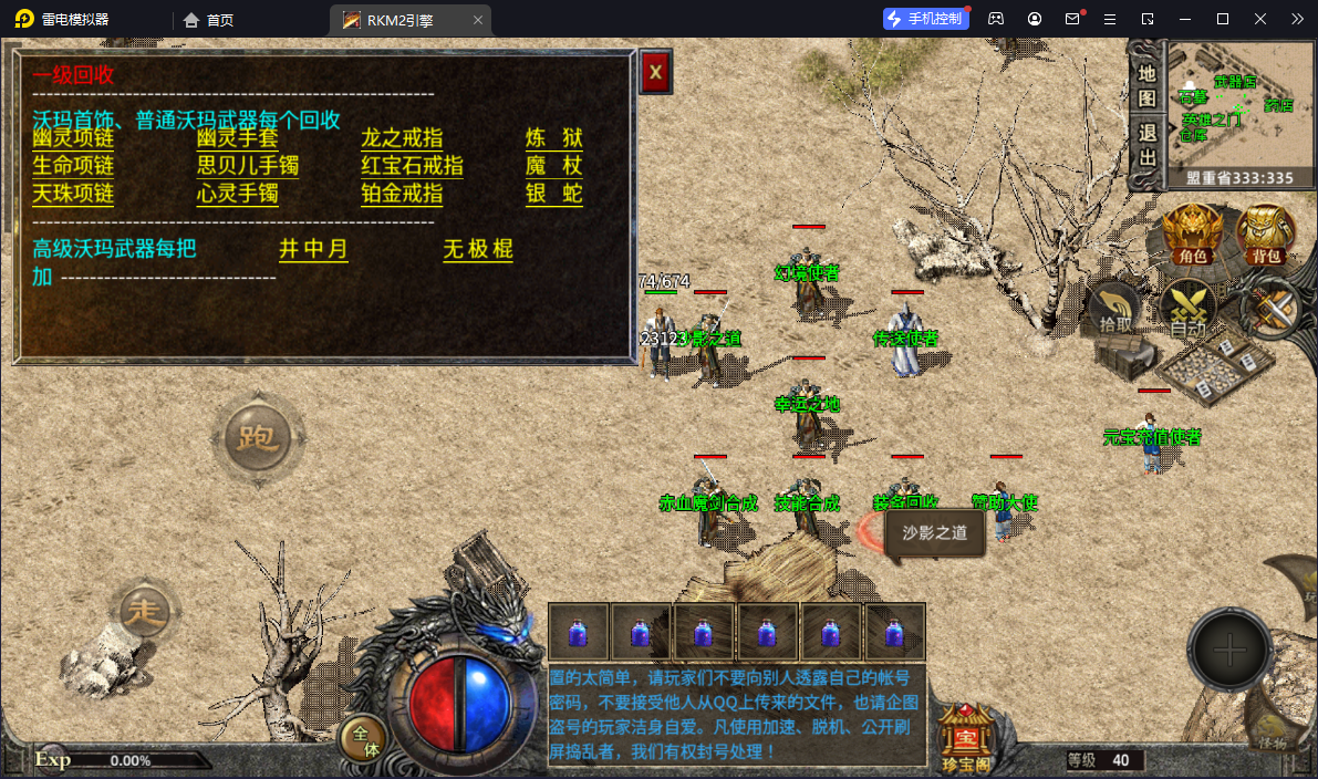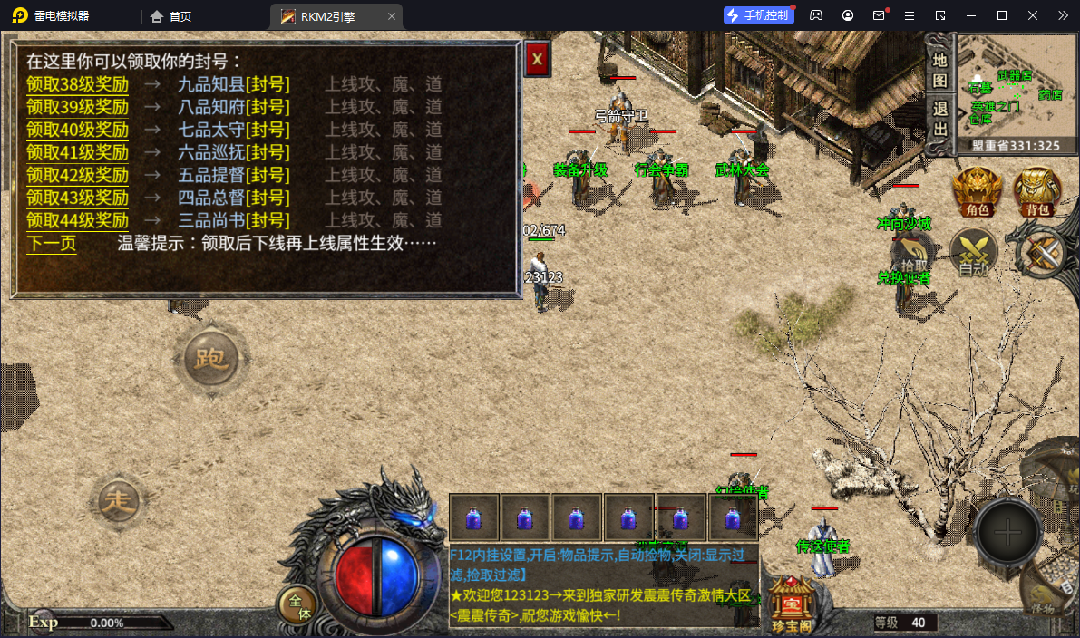 - 商店只卖辅助性道具,所有爆出装备全部红字显示,20级25级30级系统分别自动奖励2万3万5万金币;